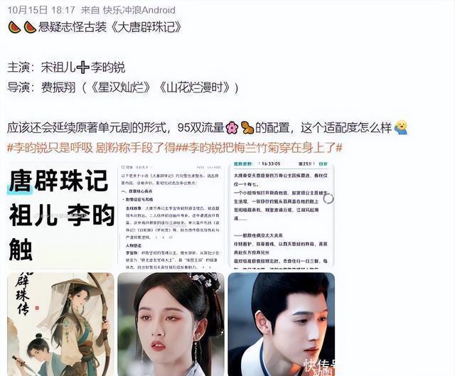 3.降低风险,稳固口碑: 一番,意味着要承担起整部剧收视和口碑的全部压力。一旦剧集表现不如预期,一番主演将是第一个被“开会”的。而作为二番,压力则小得多。剧火了,他共享红利;剧扑了,舆论的炮火也主要集中在一番身上。这让他能在一个相对宽松的环境下,专注于角色本身,稳步积累自己的作品口碑,避免了因一次“选剧失误”而导致人气大伤的风险。 下一步棋:《大唐辟珠记》——一次精准的类型选择